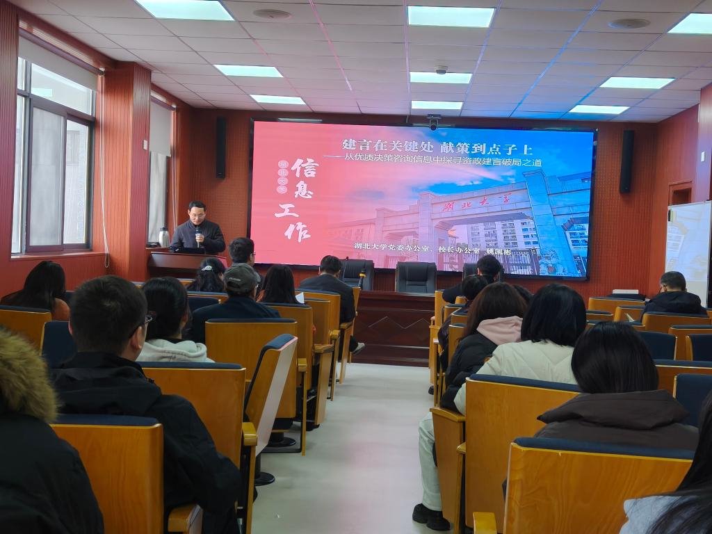 会上,姚凯彬老师主要聚焦“如何打造优质决策咨询信息”这一主题,系统阐述了信息工作的关键环节。他首先从工作遵循、报送渠道、采用成果等方面介绍了信息工作的运行机制。其次结合当前高校教师在信息报送中存在的常见问题,姚凯彬老师依托自身丰富的撰写及报送经验与优质采纳成果,针对性提出“四个好”的撰写要领——即“选题好、框好架、内容好、文风好”。最后,姚凯彬老师鼓励与会教师及时抓住机遇,积极利用信息报送平台,为省委省政府及相关机构提供高质量决策参考。