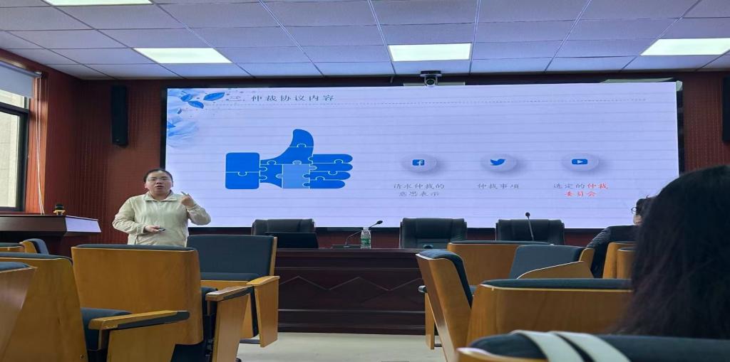 刘文昭律师围绕仲裁制度的核心要素,系统性地阐述了仲裁协议的法律内涵、效力认定及其在纠纷解决机制中的关键作用。她就仲裁员的任职资格、行为规范、职责权限以及首席仲裁员的选任程序、角色定位与核心职能等专业领域进行了深入浅出的剖析与阐释。刘文昭律师的讲解条理清晰、逻辑严密,注重将抽象的法律条文与鲜活的实践案例相结合,有效引导学生们从多维视角深化对仲裁理论与制度的理解与把握。